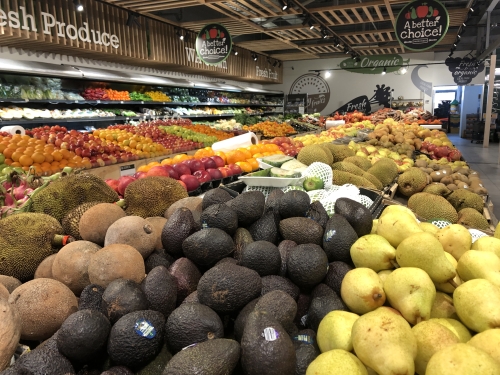 大型のショッピングモールは、日本のと同じような感じですが、野菜や果物がとにかく豊富。価格は全体的に日本よりも若干高めに感じました。