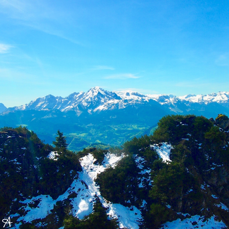 ドイツとの国境にある山です。ザルツブルクの市街地から25番のバスに乗り、約30分で到着します。標高1,776m地点の山頂までは、ロープウェイで向かいます。山頂は360°のパノラマで、麓の町や遠くの山が綺麗に見え、どこを撮ってものどかな景色が写ります。筆者は5月に訪れましたが、山頂には雪が残っており、気温も低かったです。軽く散策する程度であれば運動靴で十分かなと思います。