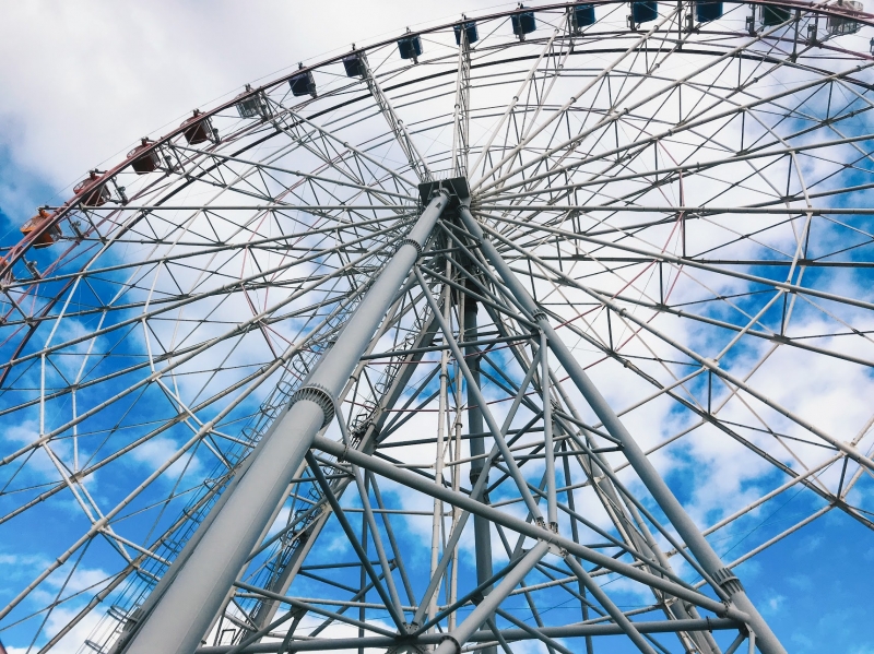 大観覧車は9:00~21:00の間で運行しており、3歳以上から1人600円で乗車できます。ゴンドラの中には、床がガラス張りの「シースルーゴンドラ」があったり、ゆるキャラのわたるが乗っているゴンドラや、ペットと一緒に乗れるゴンドラなど、種類も充実していますよ。