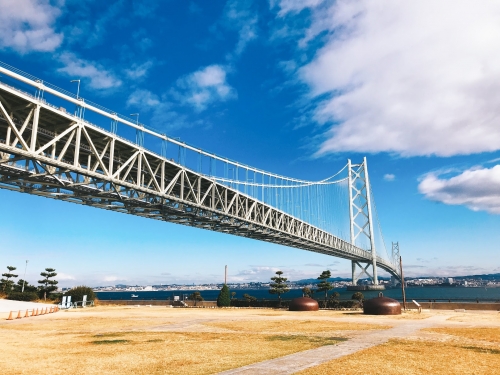 大阪方面から車を走らせ、別名「橋の見える丘」と呼ばれる淡路サービスエリアで、朝一の澄んだ明石海峡を眺めるところから1日がスタートです。淡路サービスエリアは、明石海峡大橋の景色を見る上ではベストな道の駅ですよ。