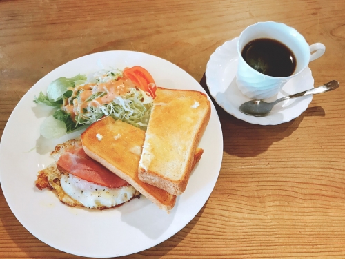 2日目の朝は、地元の方が集う「カフェレストラン海」で500円のモーニングを食べましょう。オーナー手作りのログハウスで食べる朝ご飯は最高です!