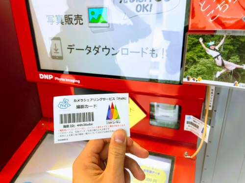 アスレチックが終わった後に、専用のカードをもらい、写真左のようなブースに案内されるので、そちらで撮影した写真を確認することができます。