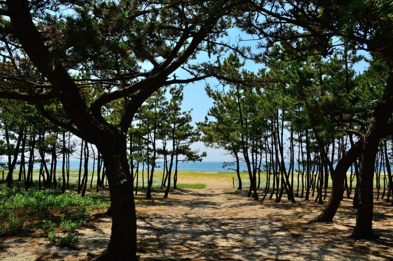 南あわじ市の播磨灘に沿って、距離にして約2.5km、数にして約5万本の黒松が生い茂る景勝地。7世紀後半〜8世紀後半に編纂された『万葉集』にも登場する、古くから知られる観光名所で、1928年(昭和3年)には国の名勝にも指定されています。
