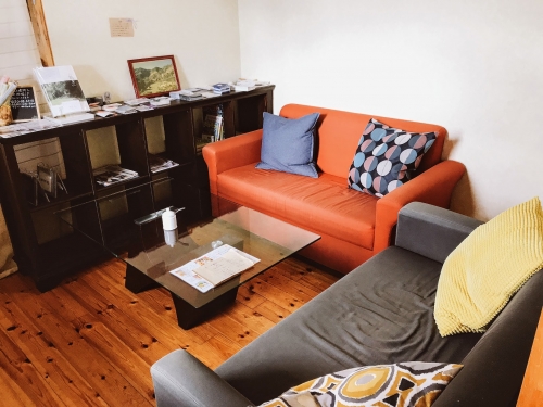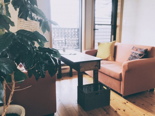2階がカフェスペースとなっています。座席は全部で3カ所ほどの、小さなカフェです。オシャレなソファーに座って味わうコーヒーは格別ですよ。