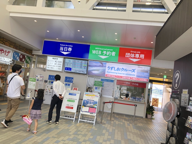 インターネット購入した方は、出航時間の30分前 までに、「うずしおドームなないろ館」でチケットを発券しなければならないので、時間にはお気をつけください。
