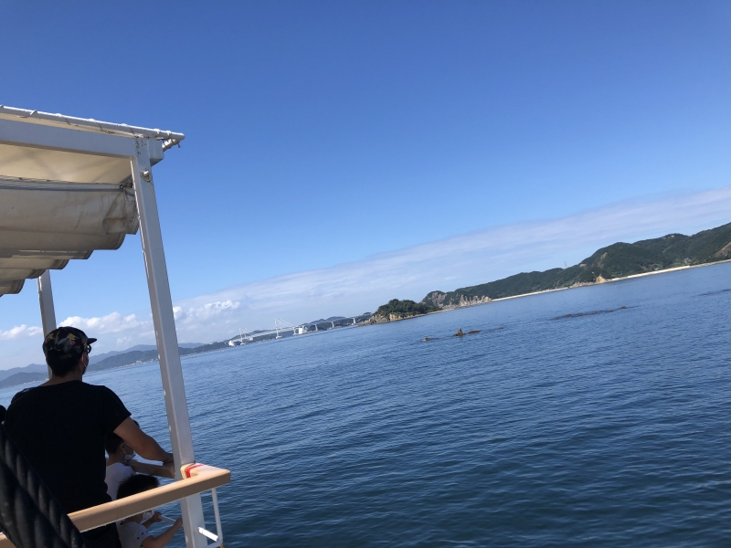 ちなみに、戻る時はみんな渦を見られた満足感でデッキから離れて見逃しがちですが、その時に見られる 大鳴門橋 が映える鳴門海峡の景色は、とっても良い場所(船の最後尾)から見られるので、何気に絶好の写真撮影タイムです。お見逃しなく!