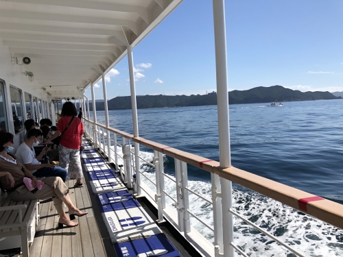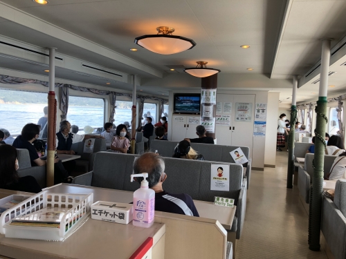 また、2つある船(後ほど船もご紹介します)は本来ならそれぞれ定員500人、700人という大型船ですが、コロナ渦においては蜜を避けるべく 定員230人 と人数制限をしています(2021年10月11日現在)。減便もしているそうなので、当日購入しようとして満席だった…ということのないよう、インターネット購入が安心できるかと思います。