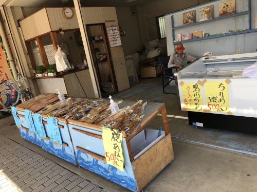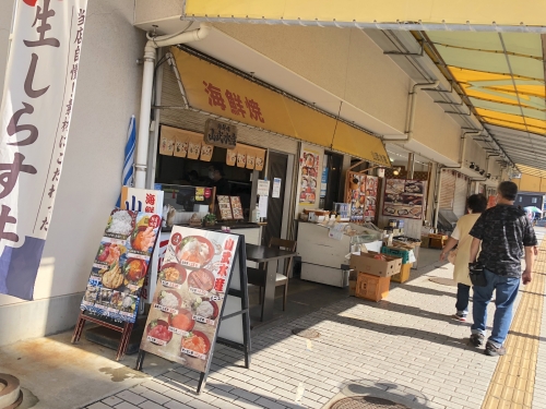 また、「道の駅 福良」の駐車場脇にも、美味しそうな淡路島の海産物が食べられるお店もいっぱい!丼、お刺身、炭火焼きなど海の幸がお手頃価格で食べられます。ここにも、特産品が買えるお土産屋さんもあるので、ぜひ覗いてみてくださいね。