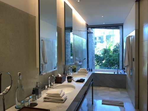全室スイートルームを目指した、というだけあって、広々としたお部屋とバルコニーはモダンでシック。そして木のぬくもりに癒され、懐かしい気分に。筆者が泊ったのは1番ベーシックな客室「アイランド」。それでも82平米もあるので、ゆったり広々でした。