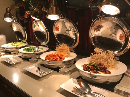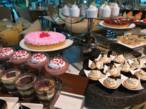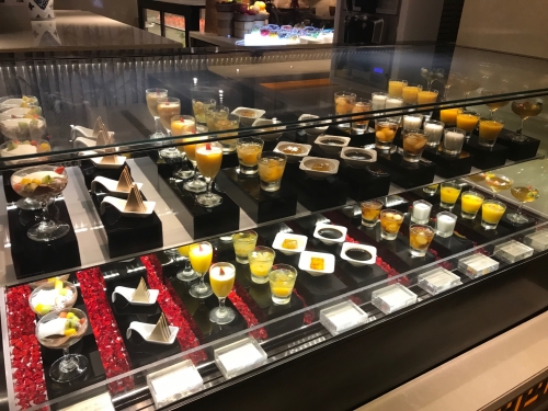 地中海料理やアジア料理を提供する「ソレイユ」では、時間によってアラカルトメニュ-、セットメニュ-、ブッフェを楽しめます。ウイ-クエンドディナ-は、バラエティ豊かな前菜ビュッフェやデザートブッフェ、選べるメインやパスタと、かなり満足できる内容でした。