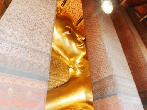 ワット・ポーはワット・プラケオとは異なり、落ち着いた雰囲気。横たわっている釈迦像「寝釈迦仏」が有名です。敷地内にはのんびり過ごしている猫もたくさんいますよ。