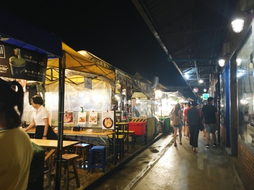日が暮れてきたらナイトマーケットを訪れてみましょう。カラフルな屋根の屋台が所せましと並ぶ、鉄道市場ラチャダーは駅からすぐとアクセスが良好なことから、観光客にも大人気の市場です。
