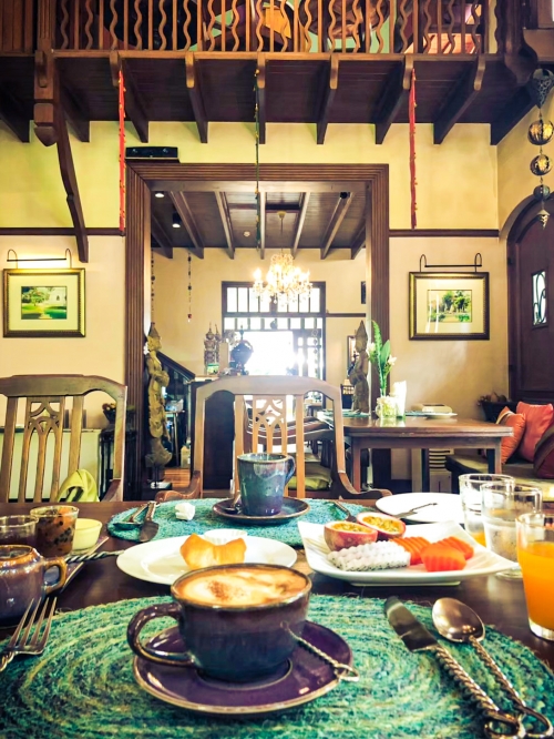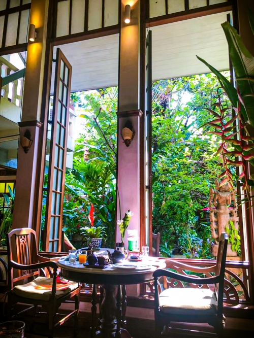料理が運ばれてくるまでコーヒーやジュースを飲みながらゆったりと過ごすのが、アリヤソムヴィラに泊まっているからこそ味わえる贅沢な時間。大きく取られた窓からは、柔らかい木漏れ日と心地よい風が入り込んできて、朝食時はエアコンも必要ないほど快適です。ぜひ朝はゆっくりと時間を取って、アリヤソムヴィラの朝食を楽しんでみてはいかがでしょうか。