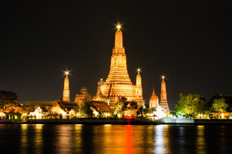 実はこちらのワット・アルン、夜になるとライトアップされ、その光がチャオプラヤー川の水面に反射し、とても幻想的な雰囲気を演出するのです。