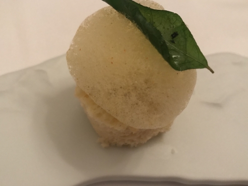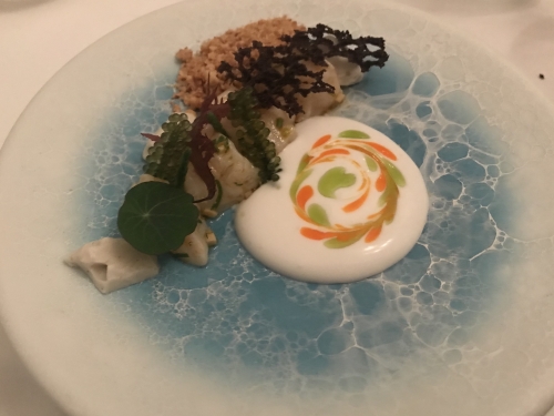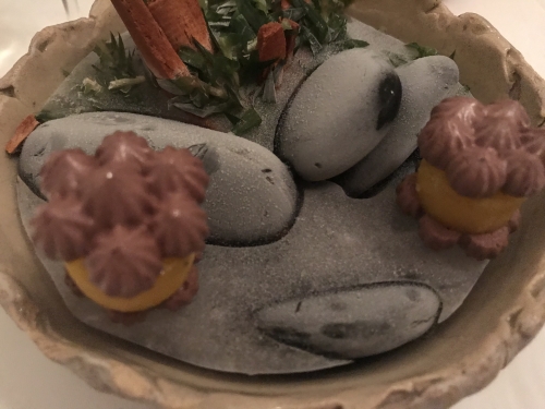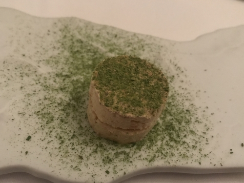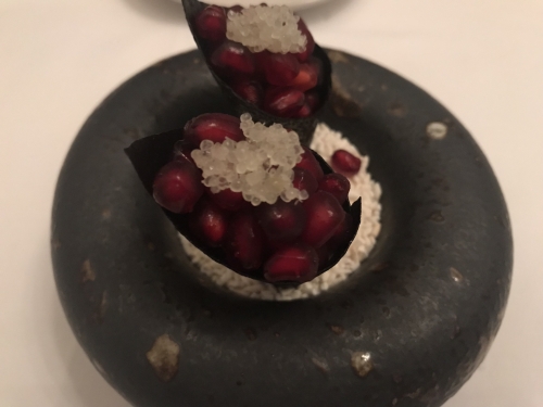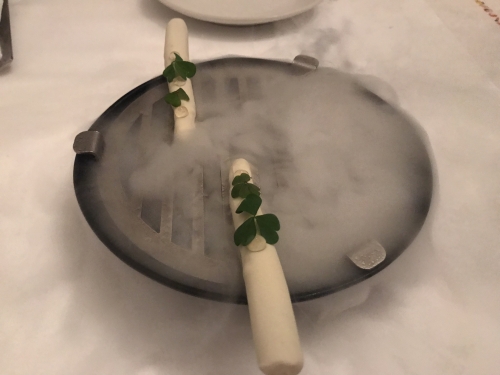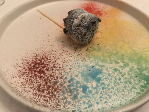1番最後のデザート、レインボーソースと少し凍ったさくさくマカロン。食べると口の中からスモークが流れだします。その斬新な感覚は今でも忘れられないほど。