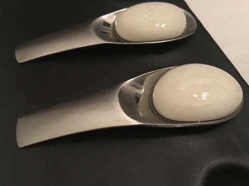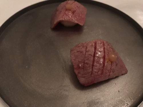 私たち日本人になじみのある品、うにとトロも。ほっとしながら口入れたら、トロの下はご飯ではなく、だしの味がするふわふわ卵白!