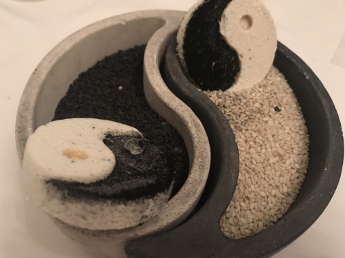 そして、前菜を食べ終えたところでクイズタイム。今まで食べ終えたお皿をパズルのように並べて、ウェイターの方と答え合わせ。お皿でインド地図ができあがりました。