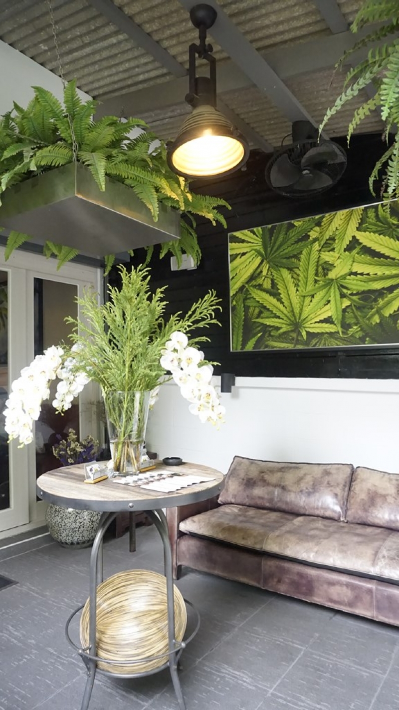 今回ご紹介するLeaf、店内は「南国の洗練」を体現しています。車の行きかう表通りから15mぐらい入っているためわさわさ感もなく、ちょっとした隠れ家ビストロ風なのもいいところ。入口はオーナーのセンスの良さが発揮されて素敵なウエルカムスペースになっています。
