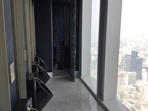 「マハナコーン・バンコク・スカイバー」には、ご紹介した店内の他に、屋外バルコニーにも席があります。空との間には遮るものが何もなく、また柵も透明で、少しスリルがあります。