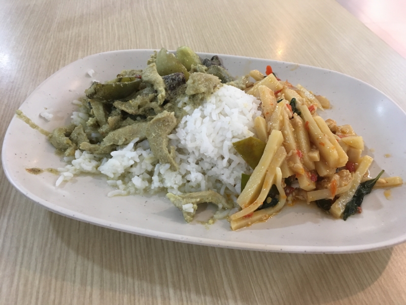 この写真のように、ちょっと欲張りして2種類のカレーを合いがけしても、60バーツ(約180円)なので、かなり安いですよね!