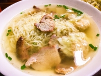 写真:sosuke ガイヤーン(小:80バーツ/約270円) |  写真:sosuke 大通りに面したお店の入り口。看板はタイ語ですが、英語メニューもあります。 |  写真:sosuke バミー(50バーツ/約170円) |