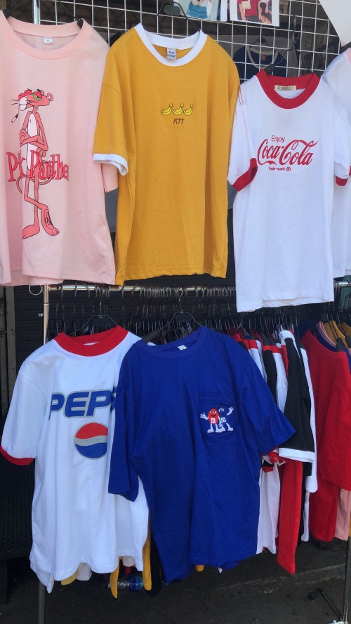 Tシャツは100バーツ(約300円)で売られているものだけでもかなりの種類があります。この写真の中のTシャツも、全て100バーツ均一でした。