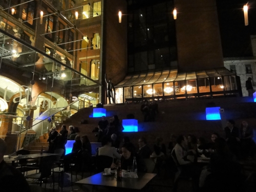 エントランス前の広場にはテーブルが出され、コンサートまでの時間を優雅に過ごす大人たちでいっぱい。大きな階段に腰かけて、リラックスしながらお酒を飲んでいるカップルも大勢いて、ヨーロッパらしい“大人の夜の過ごし方”を垣間見れるひとときです。