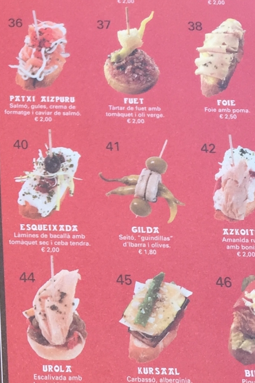 チャペラの入り口には写真付きのピンチョスのメニューが設置されており、つい立ち止まって見てしまいます。