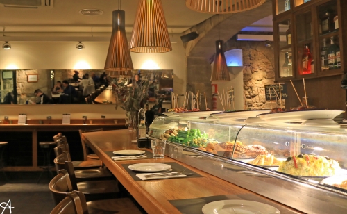 ピンチョスもタパスもあるお店で、冷たいタパスやピンチョスはショーケースから選ぶことができます。温かい料理は注文してから作ってもらえます。