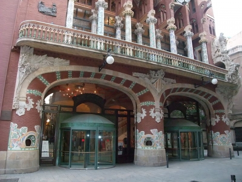 モデルニスモ建築の華美な装飾性を存分に発揮したコンサートホール。1905〜1908年に建設され、現在でもコンサートホールとして利用されています。万華鏡のように色とりどりのステンドガラスのシャンデリアや、優美な曲線の装飾、彫刻、モザイクタイルなど、どれをとっても圧倒的な美しさを誇っています。