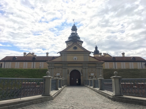 ネスヴィジ城は、この地方を納めていたラジヴィウ家のお城です。大きな池を持つ庭園を進むと、このお城が見えていきます。ベラルーシの方たちからは、最もきれいなお城と言われています。庭園内では、池の周りを散歩したり読書をしたりと、皆さん思い思いの時間を過ごすことができます。