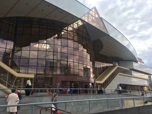 聖霊大聖堂から南側へ向かう広い通りをくだっていくと、ミンスク中央駅があります。ロシアやウクライナ、ポーランドへ向かう国際列車の乗り入れるベラルーシで最大の駅です。外観は現代的で美しくシンプル。エントランスを入ると、ヨーロッパとロシアの融合されたシンメトリーな景観の良さとスタイリッシュさを感じます。