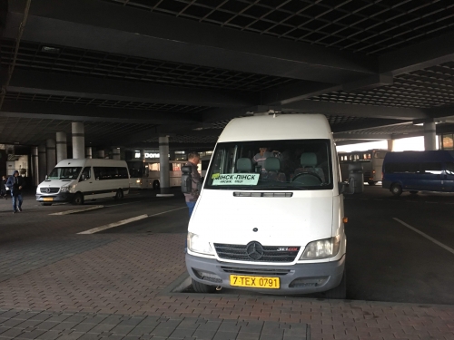 16:20、ミンスクへ帰るバスに乗ります。先ほどのバス停らしきところの目の前にホテルがあり、受付の方が英語を話せるようですので、先にバスについて聞いておくともよいかもしれません。運転手さんからチケットを買えます。