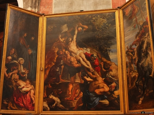 白を基調とした美しい聖堂内には、少年ネロが憧れたバロックの巨匠ルーベンスの祭壇画が複数かけられています。中でも特に注目したいのが、中央祭壇に掲げられた『マリア被昇天』と、左右の翼廊に飾られた『キリストの昇架』に『キリストの降架』。ダイナミックで迫力ある絵に、感動です。
