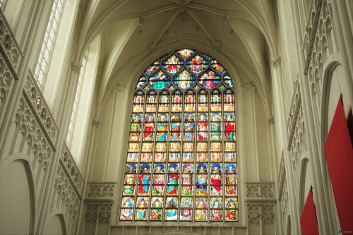 ネーデルランド最大級の大聖堂と言われる広大な聖堂内には「アントワープの聖母」と呼ばれる木製のマリア像に、白い大理石の「聖母子の像」、優しい光を放つステンドグラスなど、多くの見どころがあります。ネロを迎えに天使たちが舞い降りてきた天窓もお見逃しなく。
