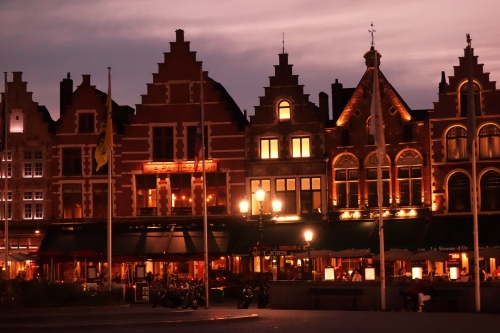 夕暮れ時から夜にかけてのブルージュは、昼間とはまったく別の顔で、ブルージュの魅力が倍増する時間です。9.マルクト広場に建つと、ギルドハウスや市庁舎が光の中に浮かび上がり、シャッターを押す手が止まらなくなるはず。
