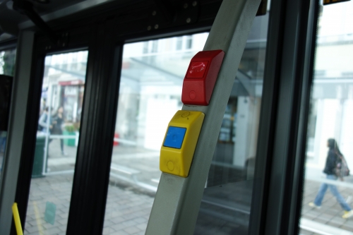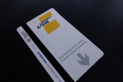 マルクト広場近くのフラーミング通り(Vlamingstraat)の停留所から風車まで、バスで15分弱です。バスの前扉から乗車して、運転手からチケットカードを購入します。€3(¥402)で1時間乗り降り自由。降りる時にベルを押します。降りる場所が不安な時は、運転手さんに降りたい場所を伝えておくと教えてくれます。