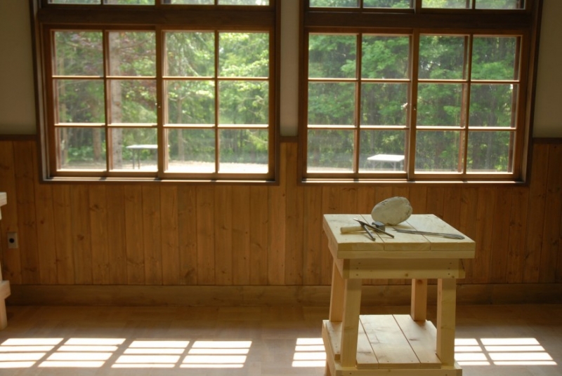 アルテピァッツァ美唄では、イタリアの白大理石(もしくは軟石)に、自分の"こころ”を彫る授業が定期的に行なわれています。やすり、ノミ、金槌などの道具も、イタリア製の本格的なもの。ホンモノに触れ、自身のこころと向き合い、こつこつと石を彫る時間はきっと、貴重な体験となるでしょう。