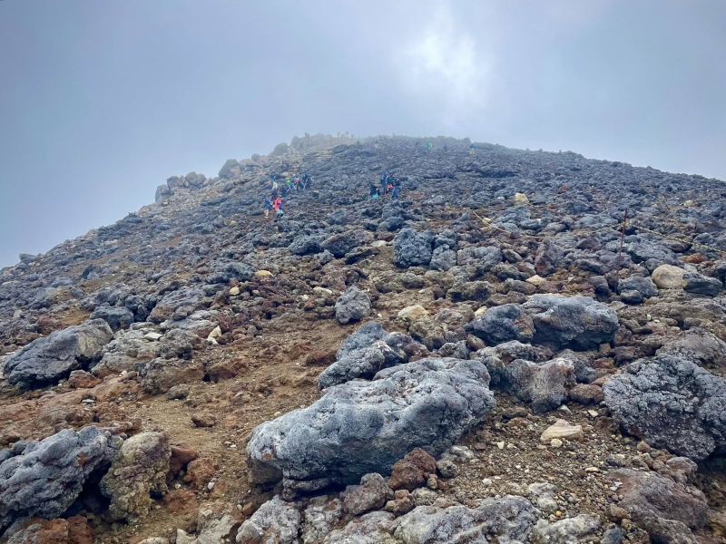山頂直前でこのガレ場を登るのか…と一瞬嫌になりかけるかもしれませんが、登っていくと意外にもぐんぐんと山頂が近づいてきます!