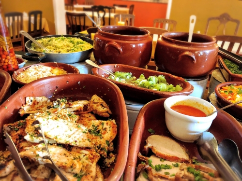 店内は落ち着いた雰囲気で、ランチ時間にはブラジルの家庭料理を楽しめるバフェットも提供しています。