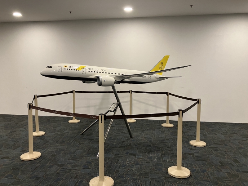他にも人間よりも大きなサイズのロイヤルブルネイ航空の飛行機模型が置いてあり、飛行機好きにはたまらない空間がありました。世界時計もかなり大きく並んでいますが、メッカの時間が書いてあるのもイスラム教国ならではの光景だなと感じました。