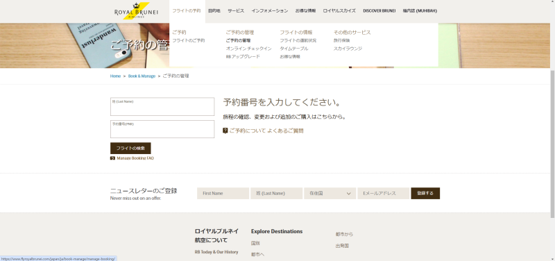 出典:www.flyroyalbrunei.com予約管理トップページ