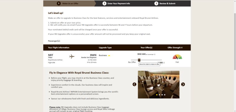 出典:www.flyroyalbrunei.comアップグレード入札申し込みページ