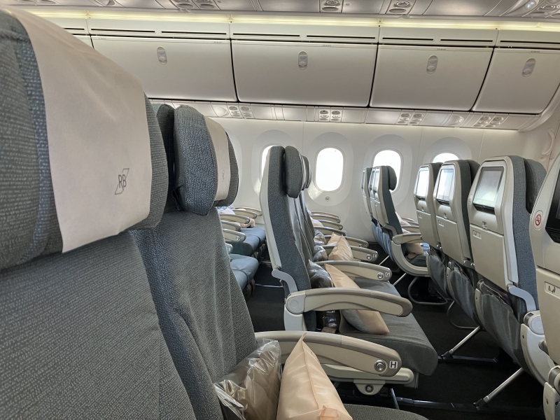 ブルネイーメルボルン間で運航しているボーイング787‐8(全席に枕と毛布が配布されている)