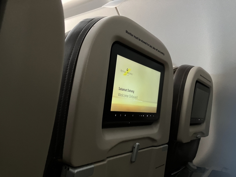 機内エンタメも付いている(日本ーブルネイ間を運航しているエアバスA320neo)