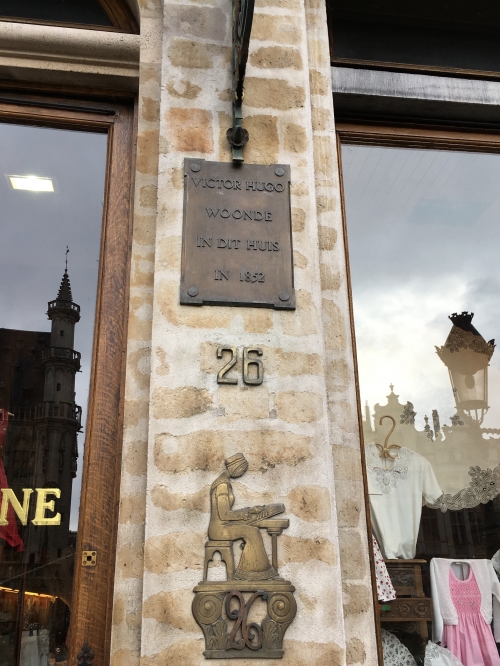 その頃、ユーゴ―がフランスから逃れ暮らしていたのが、この建物だと言われています。現在はレース屋さんとチョコレート屋さんになっています。