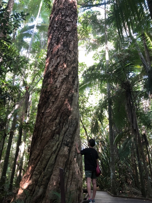 ケアンズボタニックガーデン内では、熱帯雨林の植物に囲まれたボードウォークがあり、ゆっくりと散策することができるうえに、ベンチも併設されているので、トロピカルな木々に囲まれながら休憩することも可能です。