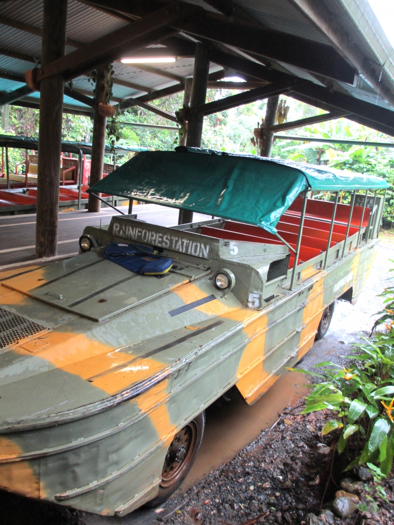 キュランダからシャトルバスで約5分、ケアンズからは約30分、水陸両用車のアーミーダックで森林を探索できたり、オーストラリアならではの動物達とのふれあいを体験できる「レインフォレステーション」に到着します。
