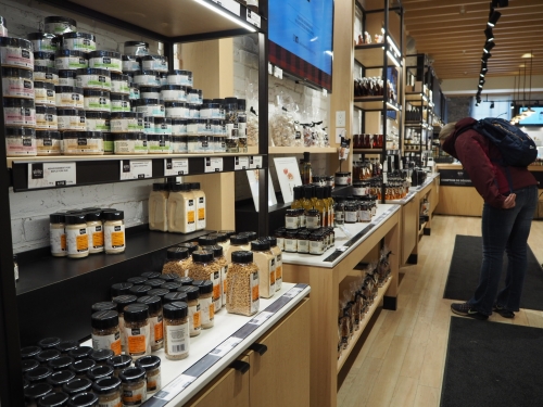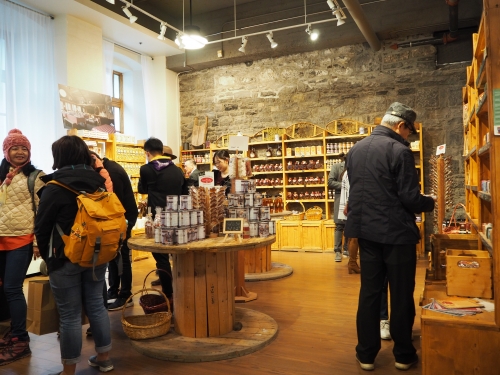ボンスクール・マーケットというモールにある「Haut Bois Normand(写真右)」は、メープルポップコーンや石鹸など商品のバリエーションが豊富なので、お土産探しに困りません。
