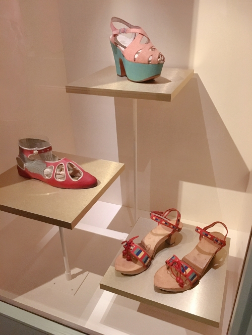 後半は、戦後に靴がファッションの重要なモチーフになってからの変遷を辿ります。パンプス、ハイヒール、ストラップなど、今では当然のバリエーションとしてあるデザインが登場してきた背景や経緯を見ながら、これまた今見てもかわいい靴たちを追いかけます。この辺は、オシャレ好き・ファッション好きの女子にはたまらないコーナーではないでしょうか。